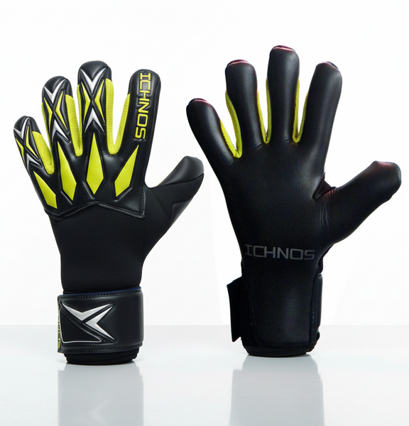 ICHNOS Defract Goalkeeper Gloves - Negative cut Fingersave, Black & Fluo Green